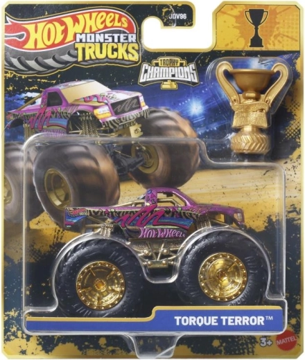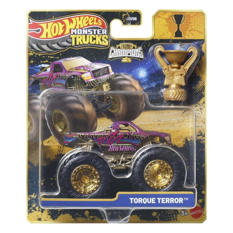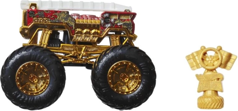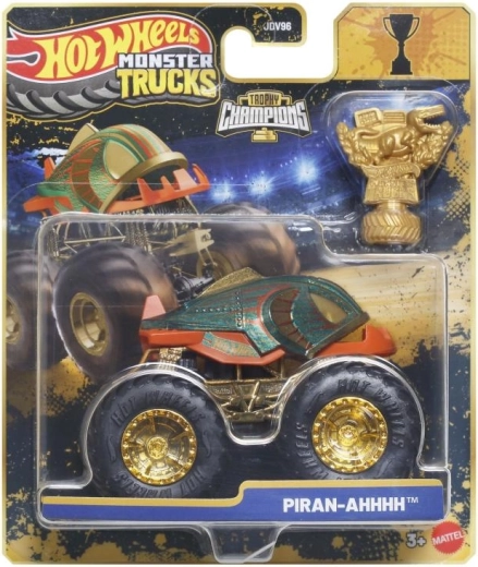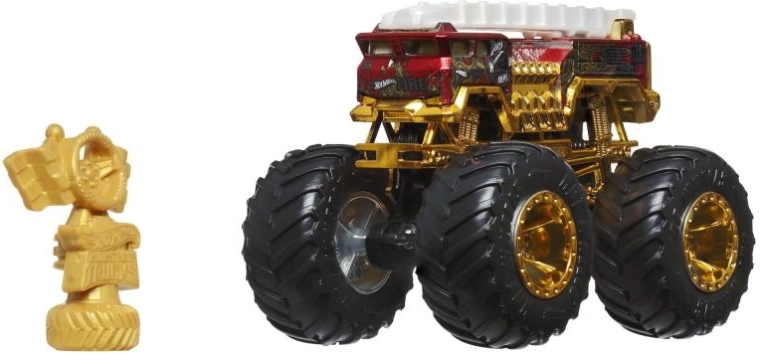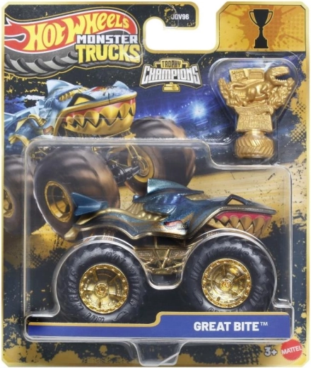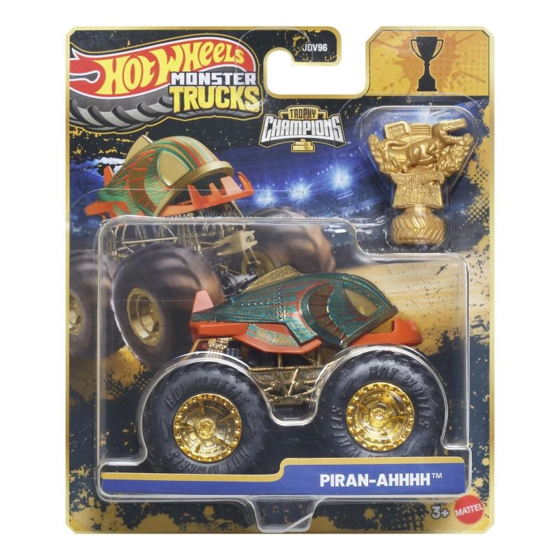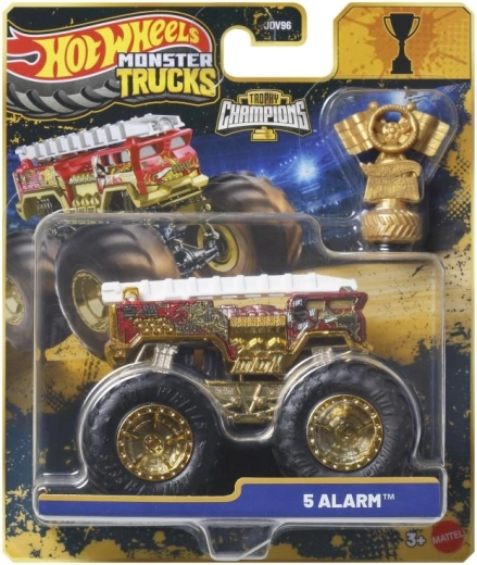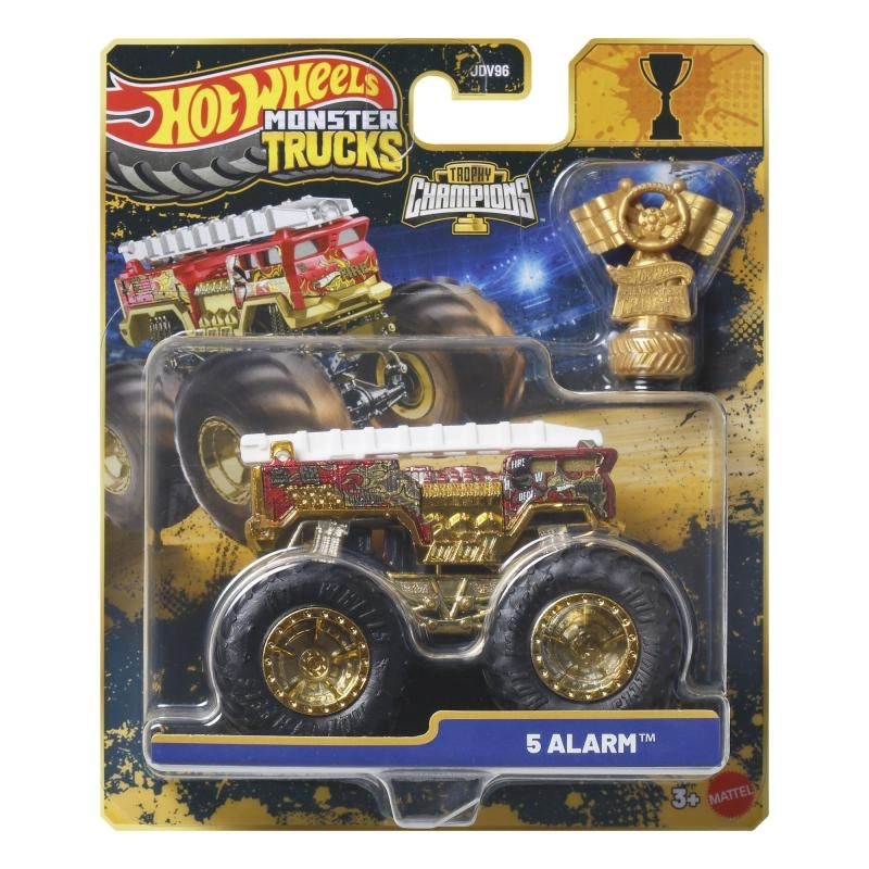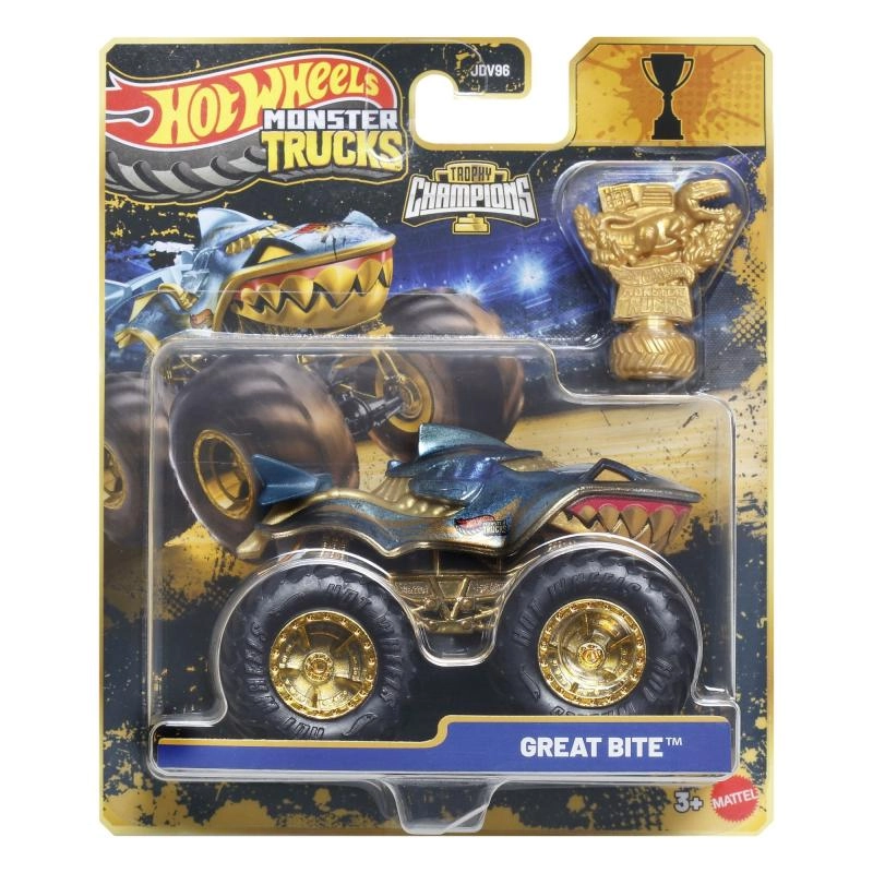 Súčasťou balenia je zlatá trofej Hot Wheels Monster Trucks Live – ideálna pre pretekárske príbehy a parádne vystavenie.