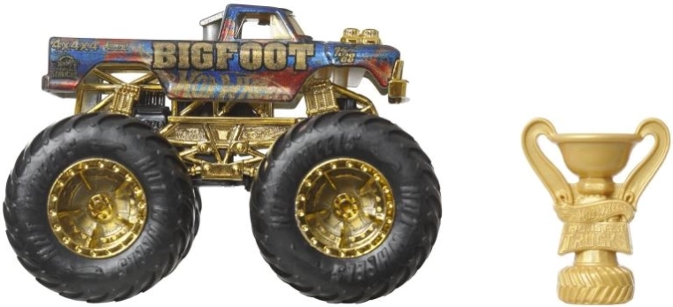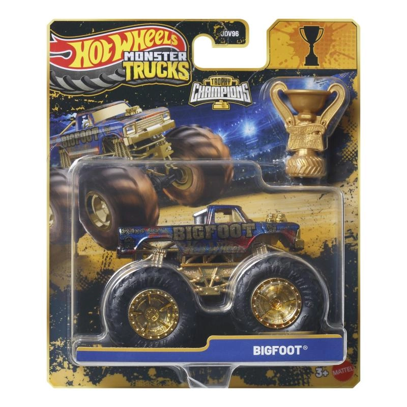 Oslávte 50. výročie BIGFOOT so špeciálnou edíciou Hot Wheels Monster Trucks Trophy Champions v mierke 1:64. Každý truck má prémiové detaily so zlatými akcentmi, masívne kolesá na akčnú jazdu a je doplnený o trofej šampióna na parádne vystavenie aj súťažné hranie. Ideálne pre zberateľov aj deti, ktoré milujú monster trucky a divokú off-road zábavu.