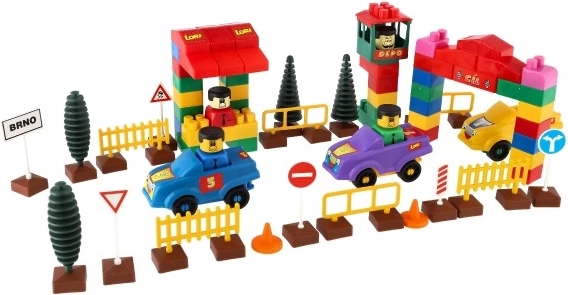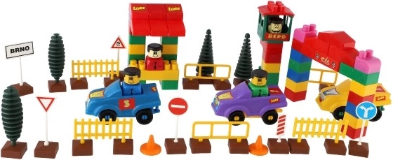 Stavebnica obsahuje realistické prvky, ktoré stimulujú dopravné prostredie pre hru, ako autá, stromy a dopravné značky.