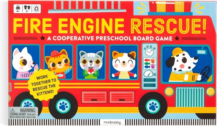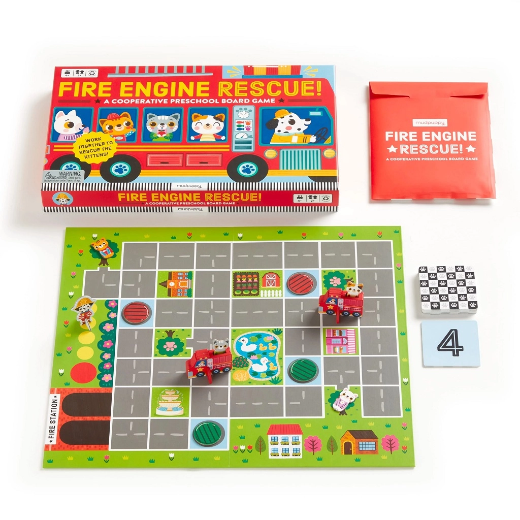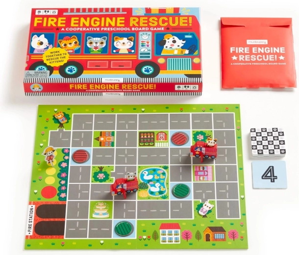 Hasičská záchranná akcia je dôvtipne navrhnutá predškolská kooperačná hra, v ktorej hráči spoločne presúvajú hasičské vozidlá po mestskej sieti ulíc, zbierajú uviaznuté mačiatka a bezpečne ich dovážajú späť na stanicu. Hra učí deti spolupracovať, čakať na ťah a rozvíja koncentráciu, predstavivosť aj základné početné zručnosti.