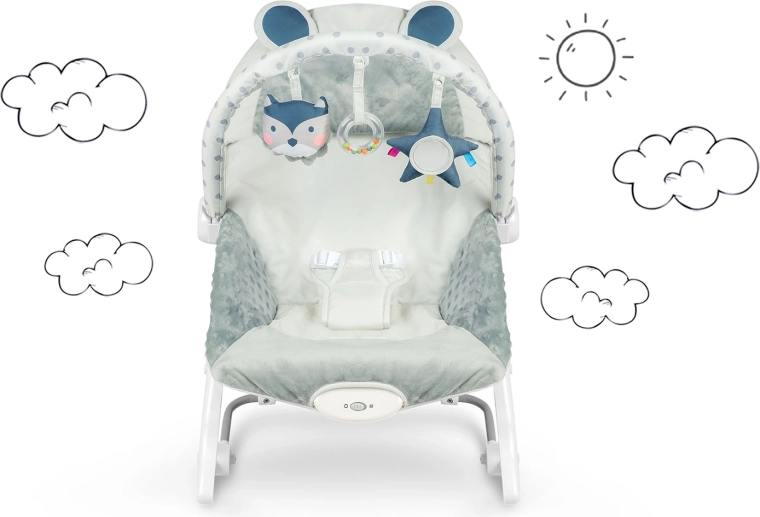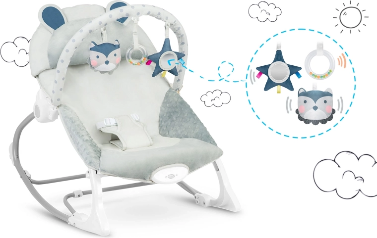 Upokojujúci rytmus hojdania a voliteľná vibračná funkcia pomáhajú bábätku zrelaxovať a rýchlejšie zaspať, zatiaľ čo vy máte voľné ruky na nevyhnutné drobnosti. Odnímateľná hrazdička so šuštiacimi plyšovými hračkami a krúžkom stimuluje zrak aj hmat a možno ju ľahko prispôsobiť – hračky sa dajú prehadzovať či vymeniť za obľúbené.