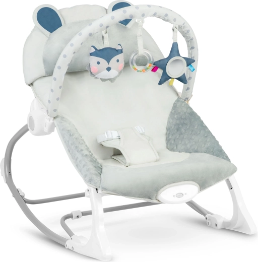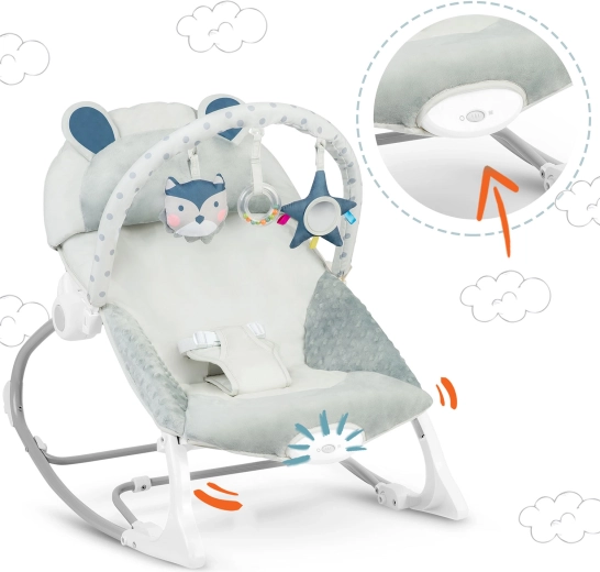 Multifunkčné detské lehátko-hojdačka RICOKIDS v štýlovej sivej farbe ponúka upokojujúce vibrácie, jemné hojdanie a odnímateľnú hrazdičku s hračkami pre zábavu aj rozvoj zmyslov. Vďaka mäkkému poťahu, 3-bodovému pásu a protišmykovým nožičkám je pohodlné a bezpečné. Poťah možno ľahko zložiť a ručne oprať.