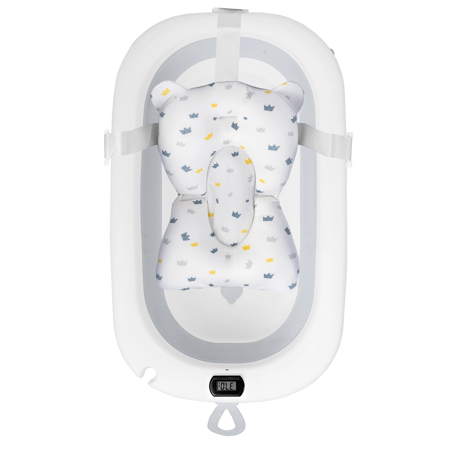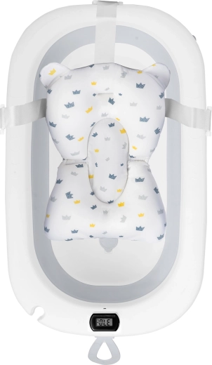 Mäkké, nadýchané polstrovanie jemne obopne bábätko a stabilizuje jeho polohu vo vode, aby bolo kúpanie pokojné a bezpečné.