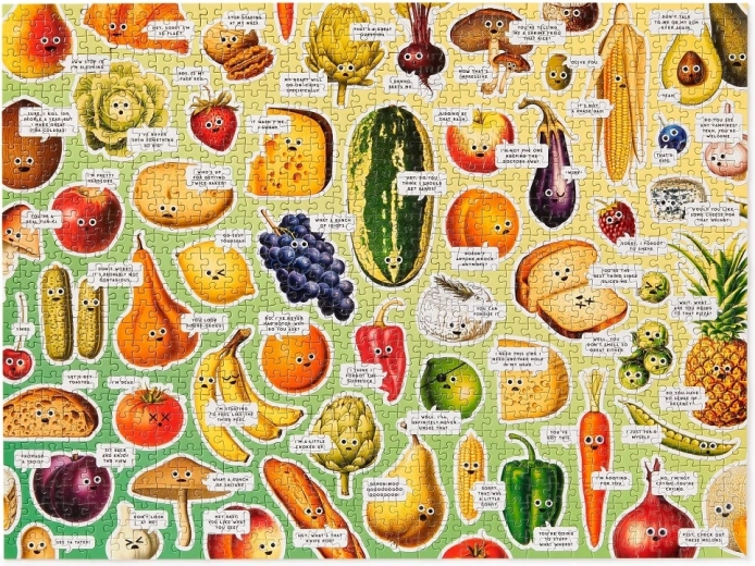 Ponorte sa do farebnej koláže ovocia, zeleniny a dobrôt, ktoré s rozkošnými očami a vtipnými výrazmi tvoria veselú scénu plnú drobných gagov. Po zložení vznikne veľký obraz 68,6 × 50,8 cm, ktorý si môžete doladiť pomocou priložených samolepiacich očí a dodať mu osobitý šmrnc.