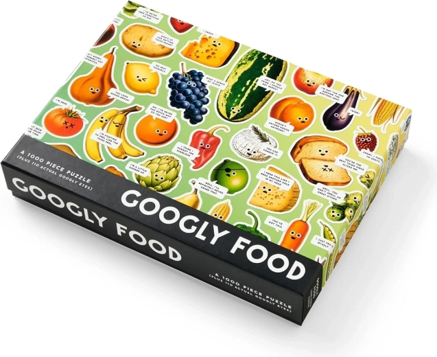 Objavte hravý svet potravín s puzzle Googly Food o 1000 dielikoch, kde farebné ovocie a zelenina s vtipnými očami ožívajú humorom aj detailmi. Čakajú vás lesklé prvky (spot UV), ktoré zvýraznia ilustráciu, a navyše 110 samolepiacich „googly“ očí pre ešte zábavnejší finálny obraz. Kvalitné dieliky z FSC certifikovaných a recyklovaných materiálov presne zapadajú a sú potlačené netoxickými farbami.
