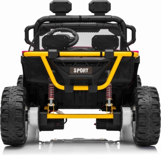 Toto detské UTV kombinuje atraktívny off‑road dizajn s praktickými funkciami na každodenné hranie. Vďaka výkonnej 24V batérii a dvom motorom 80 W zvláda jazdu v teréne, zatiaľ čo penové EVA kolesá a odpruženie vpredu aj vzadu (zadné s reguláciou) zvyšujú komfort a stabilitu. LED osvetlenie, vysoký podvozok s svetlou výškou 14 cm a robustné nárazníky podčiarkujú dobrodružný charakter vozidla.