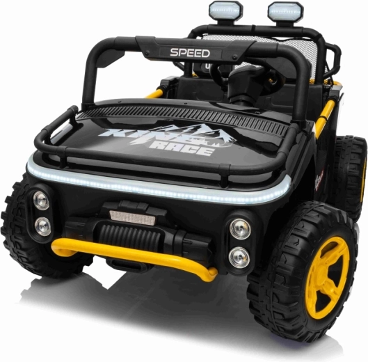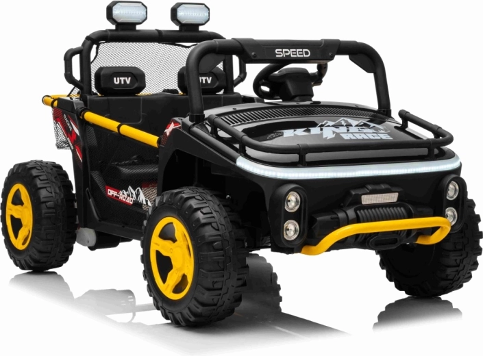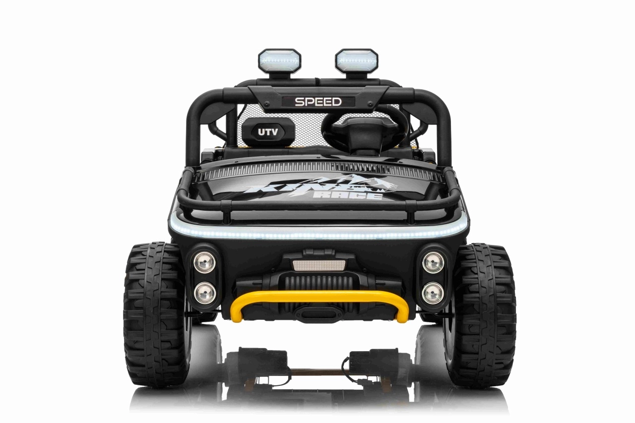 Objavte adrenalínovú jazdu s detským elektrickým buggy UTV SPEED 24V. Dva silné motory 2x80 W a vysokokapacitná batéria 24 V 9 Ah zaistia plynulý rozjazd, dve rýchlosti a dostatok výkonu aj mimo spevnené cesty. Veľké mäkké kolesá EVA (30 × 12 cm) spolu s predným odpružením a dvoma zadnými nastaviteľnými tlmičmi výborne tlmia nerovnosti a zvyšujú komfort.