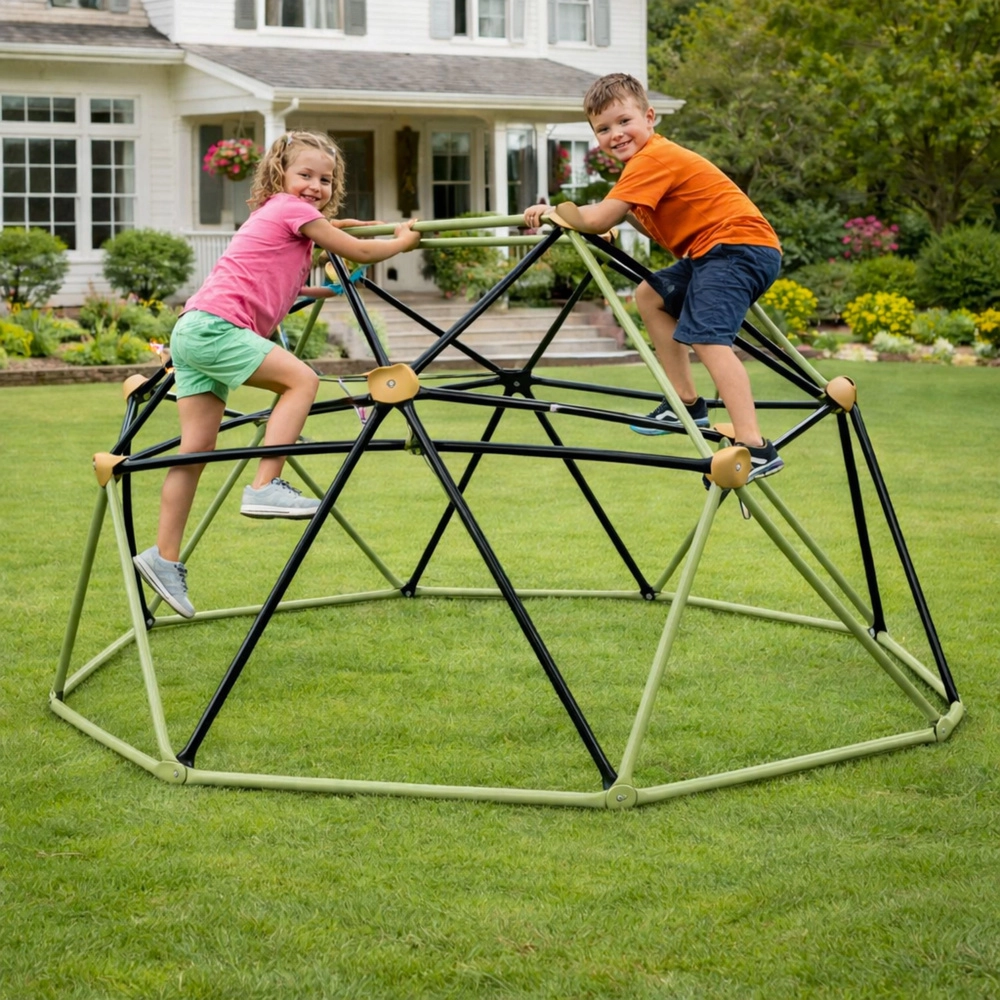 Detská lezecká kupola do záhrady ponúka stabilnú, odolnú a bezpečnú konštrukciu pre aktívnu vonkajšiu zábavu. Geodetická stavba z práškovo lakovanej ocele s protišmykovými úchytmi podporuje rozvoj sily, koordinácie a rovnováhy. Ľahko ju umiestnite na trávu, piesok či iný rovný povrch, bez nutnosti kotvenia.