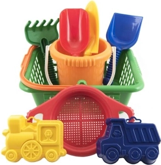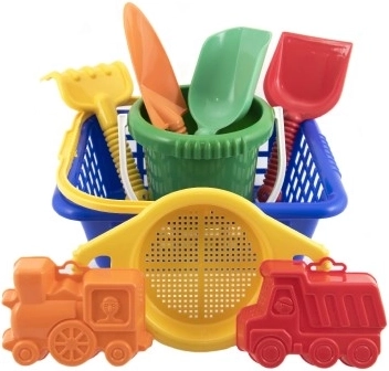 Detská sada na piesok s košíkom, vedierkom a formičkami