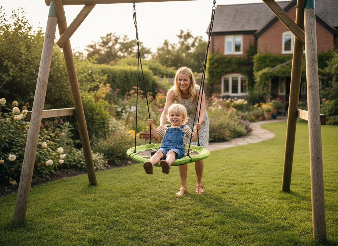 Kompatibilná s bežnými A-rámami a zavesením na záhrade. Pevné uchytenie a stabilita pre bezpečné vonkajšie hranie.