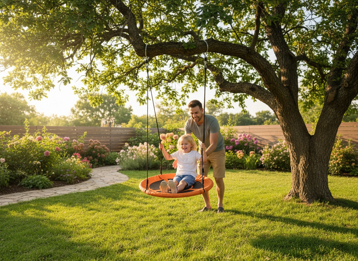 Vďaka nastaviteľnej výške 1,4–1,9 m ľahko prispôsobíte hojdačku rôznym konštrukciám či vetvám stromov. Priemer 100 cm poskytuje dostatok priestoru na sedenie aj ležanie, takže je ideálna na oddych, čítanie aj aktívne hojdanie.