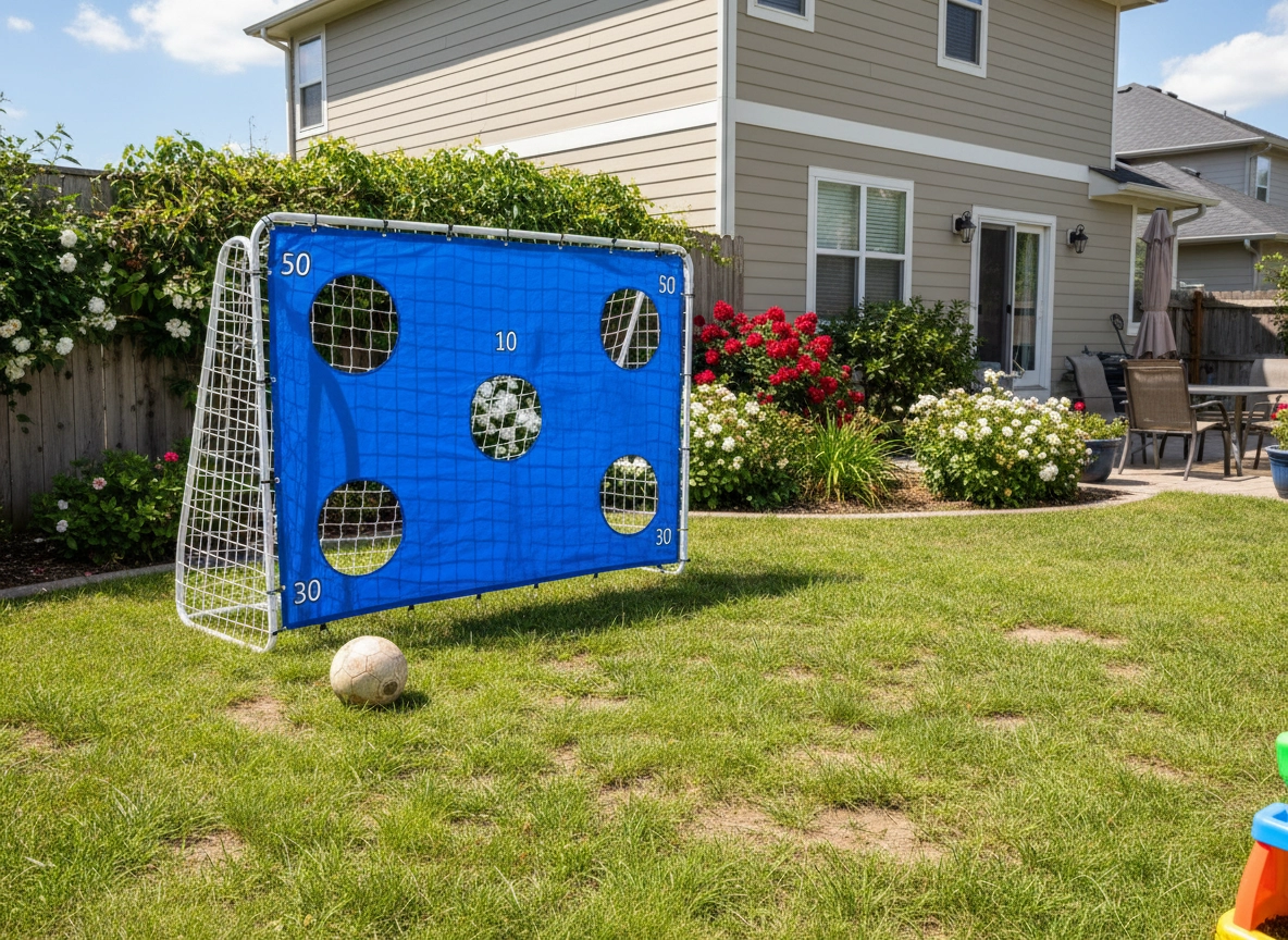 Vylepšite presnosť aj razanciu striel vďaka priloženej terčovej plachte s otvormi, ktorá premení každý tréning na súťaž. Oceľový rám s hrubostennými rúrami a kotvami do zeme zaistí stabilitu, zatiaľ čo kvalitná sieť bezpečne zachytí lopty.