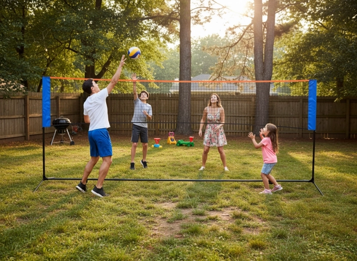 Univerzálna športová sieť na bedminton, volejbal aj tenis vám vytvorí ihrisko kdekoľvek – na záhrade, pláži či v škole. Vďaka nastaviteľnej výške 95 / 155 / 225 cm, stabilnej kovovej konštrukcii a praktickej prepravnej taške ju rýchlo postavíte aj zložíte. Rozmer siete 305 × 103 cm je ideálny na rodinnú zábavu aj tréning.