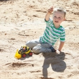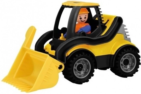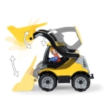 Predná lyžica sa ľahko dvíha a vyklápa, takže deti môžu naberať a presýpať piesok či kocky ako skutočný nakladač.