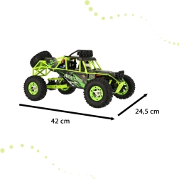 Krútiaci moment motora je realisticky prenášaný cez kardan na nápravy, kovové prevody zvyšujú odolnosť a akumulátor 7,4 V 1500 mAh dodáva potrebný výkon. Súčasťou balenia je všetko potrebné na jazdu – auto, diaľkový ovládač, akumulátor aj nabíjačka.