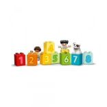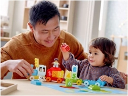 Farebná sada LEGO DUPLO Vlak s číslami prináša deťom od 18 mesiacov hravú cestu k počítaniu. Obsahuje tlačený vlak, 10 kociek s číslami a figúrky dievčatka, chlapca a psíka pre zábavné učenie čísel, rozvoj jemnej motoriky a kreatívnu hru.