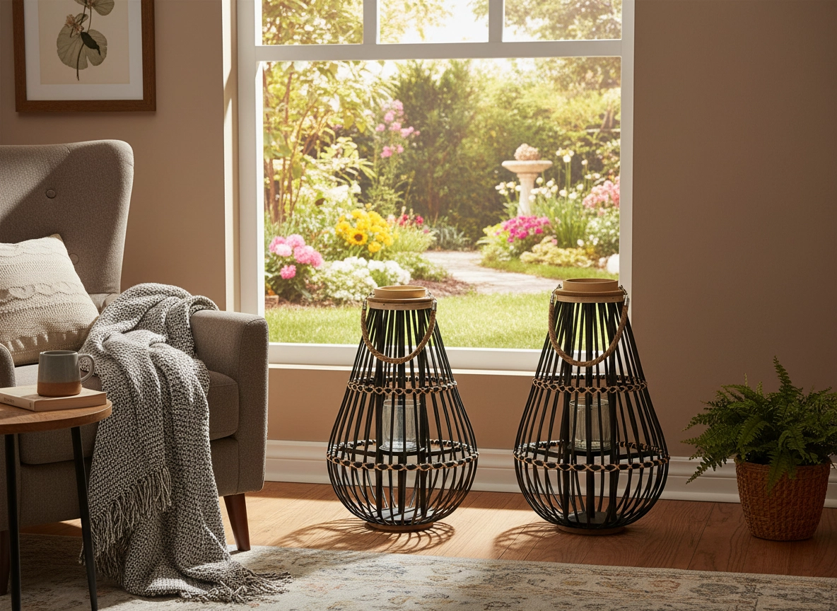 Veľký čierny lampáš z kvalitného dreva so sklenenou vložkou je ideálny na romantické večery, slávnostné príležitosti aj každodenné zútulnenie priestoru. Vďaka svojmu rozmeru skvele vynikne pri vchode, v obývacej izbe aj na terase a jeho otvorená konštrukcia krásne rozptyľuje svetlo sviečky.
