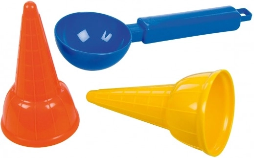 Tento farebný zmrzlinový set premení každé pieskovisko na malé cukrárstvo. Deti môžu naberať piesok či vodu, tvoriť kopčeky „zmrzliny“ a servírovať ich do kornútikov. Ľahké a odolné prevedenie zaisťuje pohodlné používanie aj dlhú životnosť.
