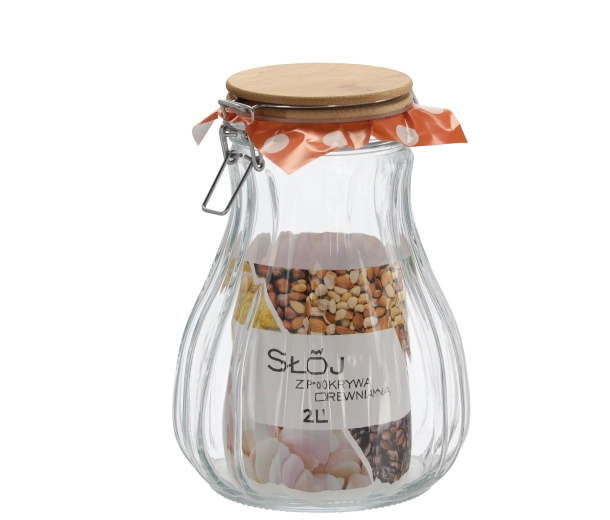 Táto kvalitná sklenená nádoba s objemom 2 litre je praktickým a estetickým riešením na každodenné skladovanie potravín. Drevené viečko zaisťuje prirodzený vzhľad a pomáha udržať obsah dlhšie čerstvý.