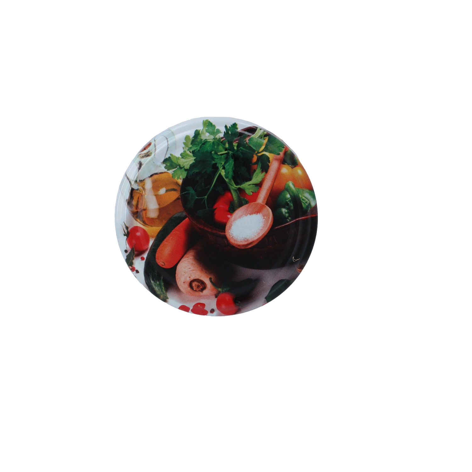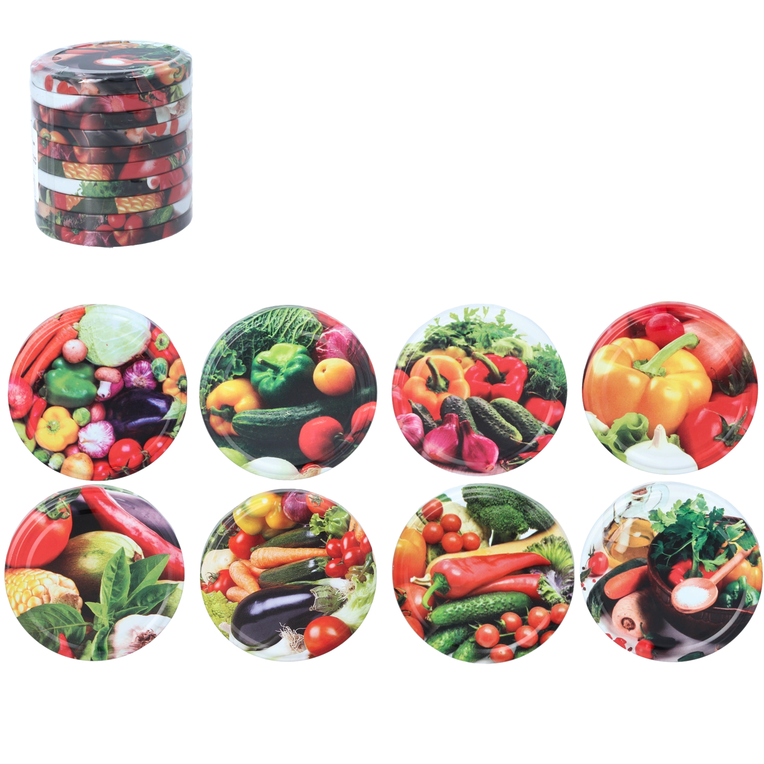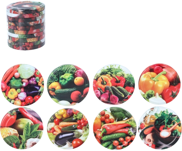 Vyrobené z vysokokvalitného kovu vhodného na styk s potravinami, chránia pred vysychaním, vlhkosťou a oxidáciou. Lesklý povrch s farebným zeleninovým motívom dodá zaváraninám čistý a estetický vzhľad v každej kuchyni. Viečka sú určené na opakované použitie a jednoduchú údržbu.