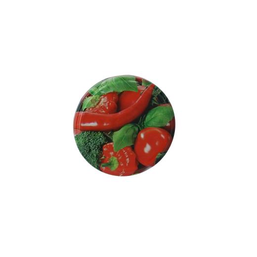 Elegantný motív zeleniny v plnofarebnej potlači dodá vašim pohárom atraktívny vzhľad – skvelé na darčekové balenia domácich marmelád, čalamád či nakladanej zeleniny. Viečka sú vhodné na opakované použitie – po použití ich stačí umyť a môžete ich znova nasadiť.