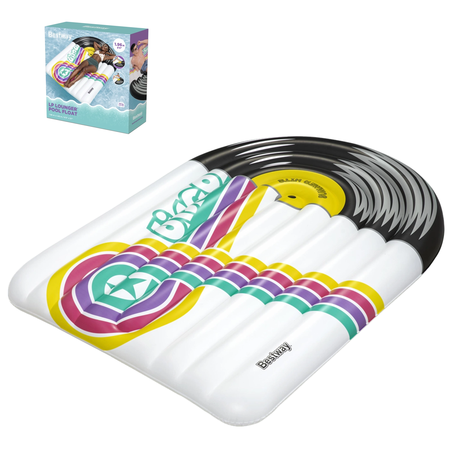 Užite si leto v štýle s nafukovacím ležadlom Bestway LP Lounger vo vzhľade vinylovej platne. Veľká plocha 196 × 145 cm, stabilná I‑beam konštrukcia a ochranná vrstva Color Shield pre žiarivé farby bez púšťania farby na pokožku. Ideálne na relax pri bazéne, na jazere aj pri mori.