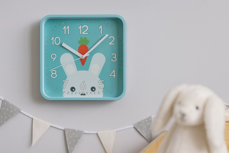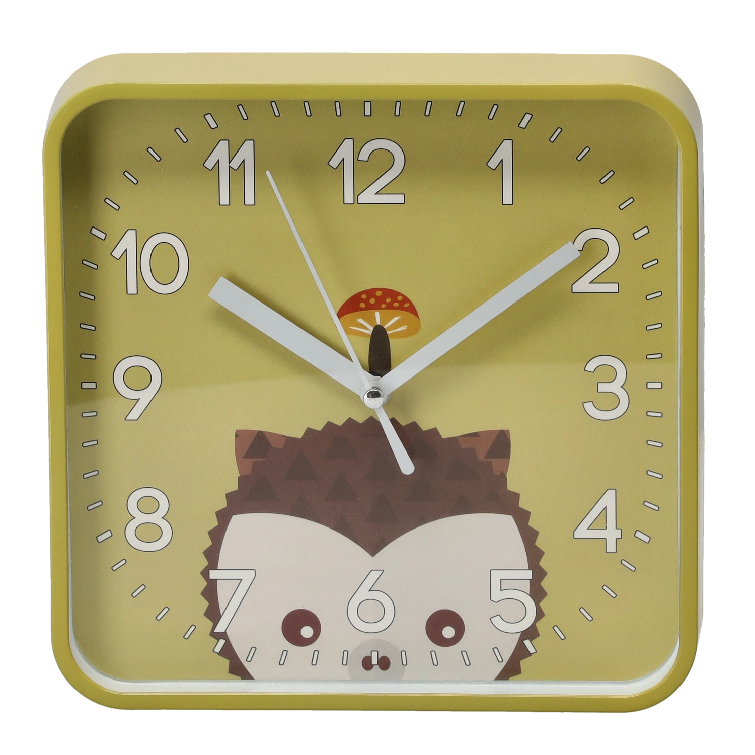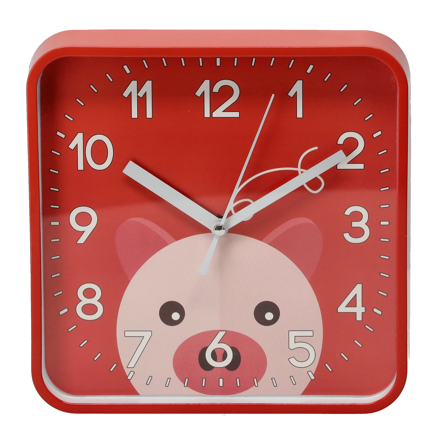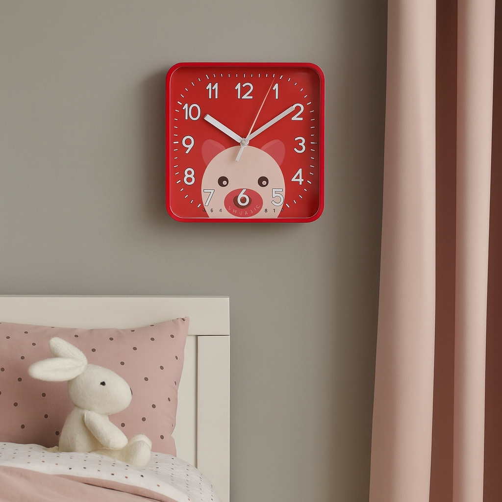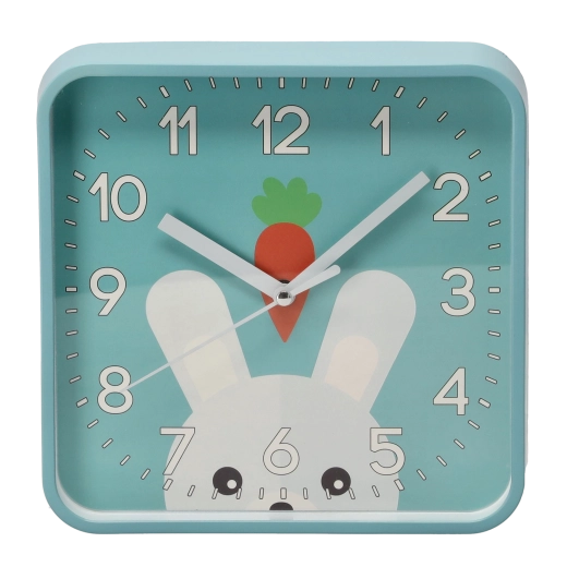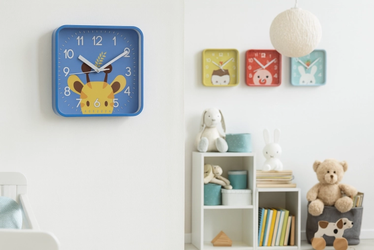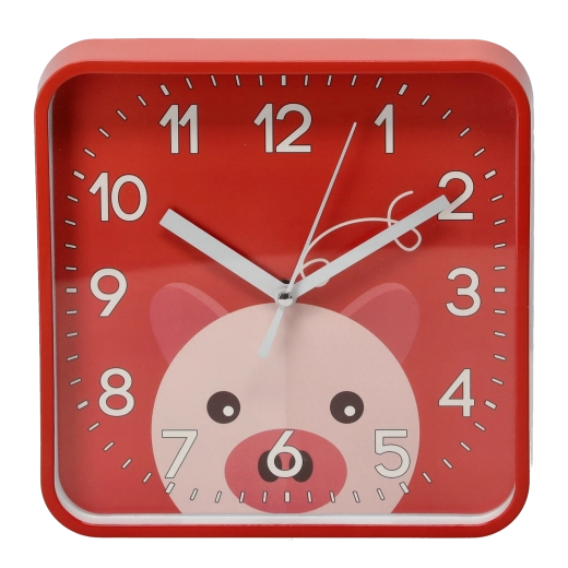 Veselé štvorcové hodiny s oblými rohmi vytvoria v izbe príjemnú atmosféru a podporia detskú zvedavosť. Veľké kontrastné číslice a výrazné minútové rysky zabezpečujú excelentnú čitateľnosť aj z diaľky, takže sa deti učia čas prirodzene a hravou formou.