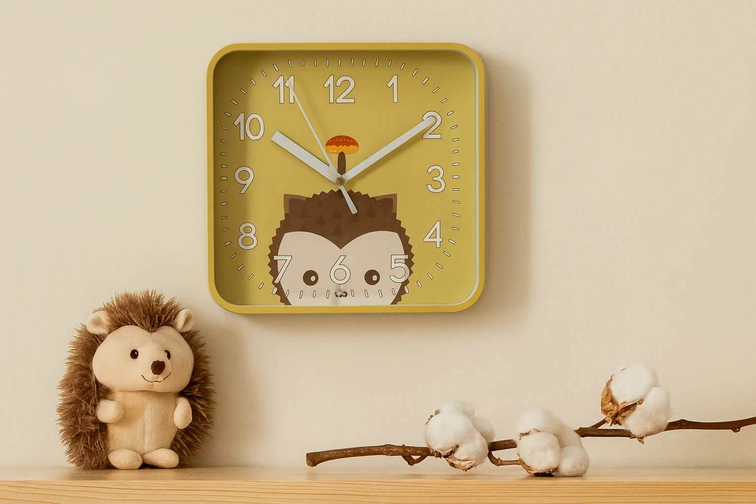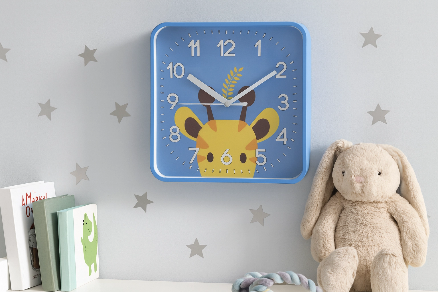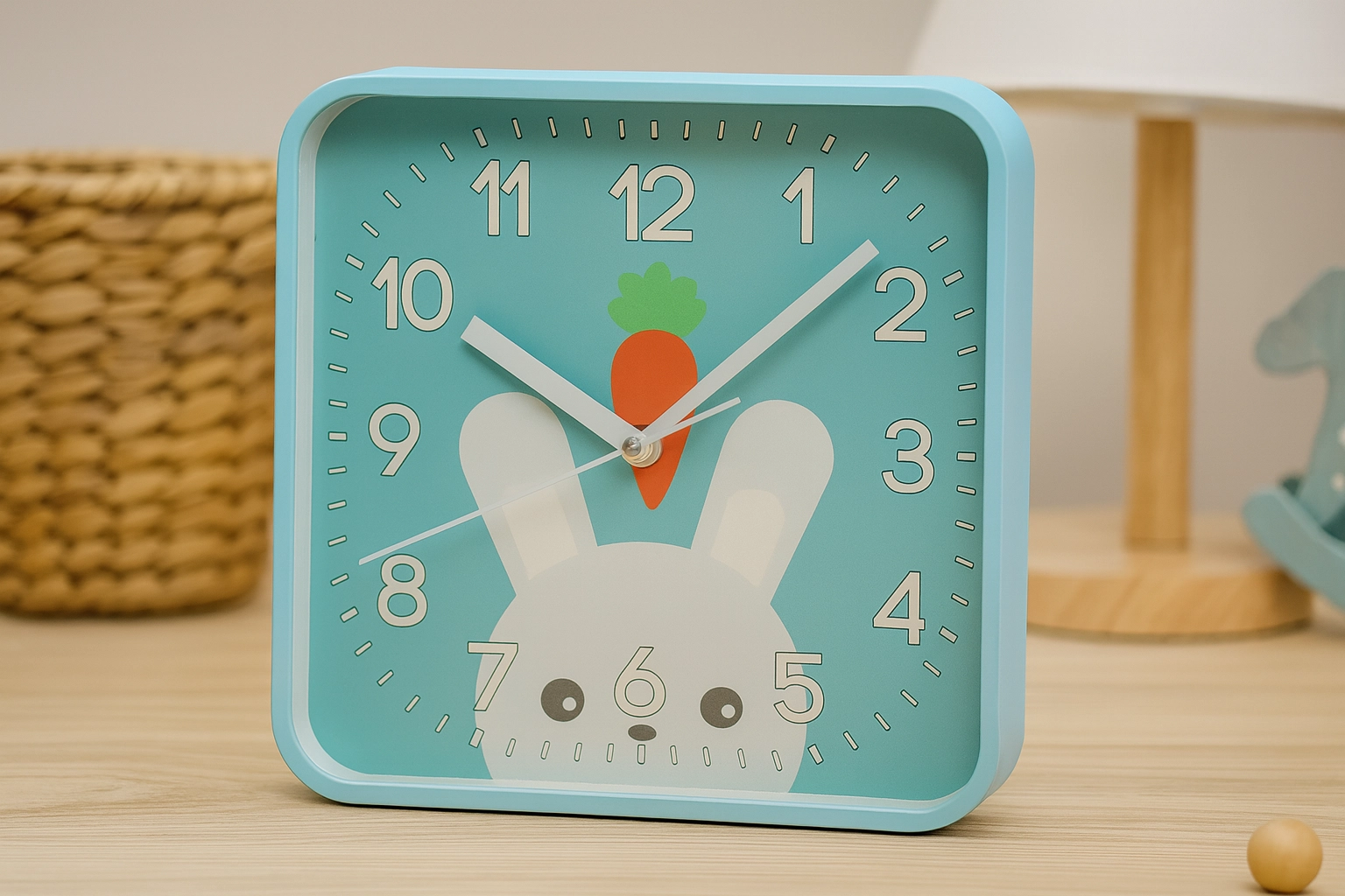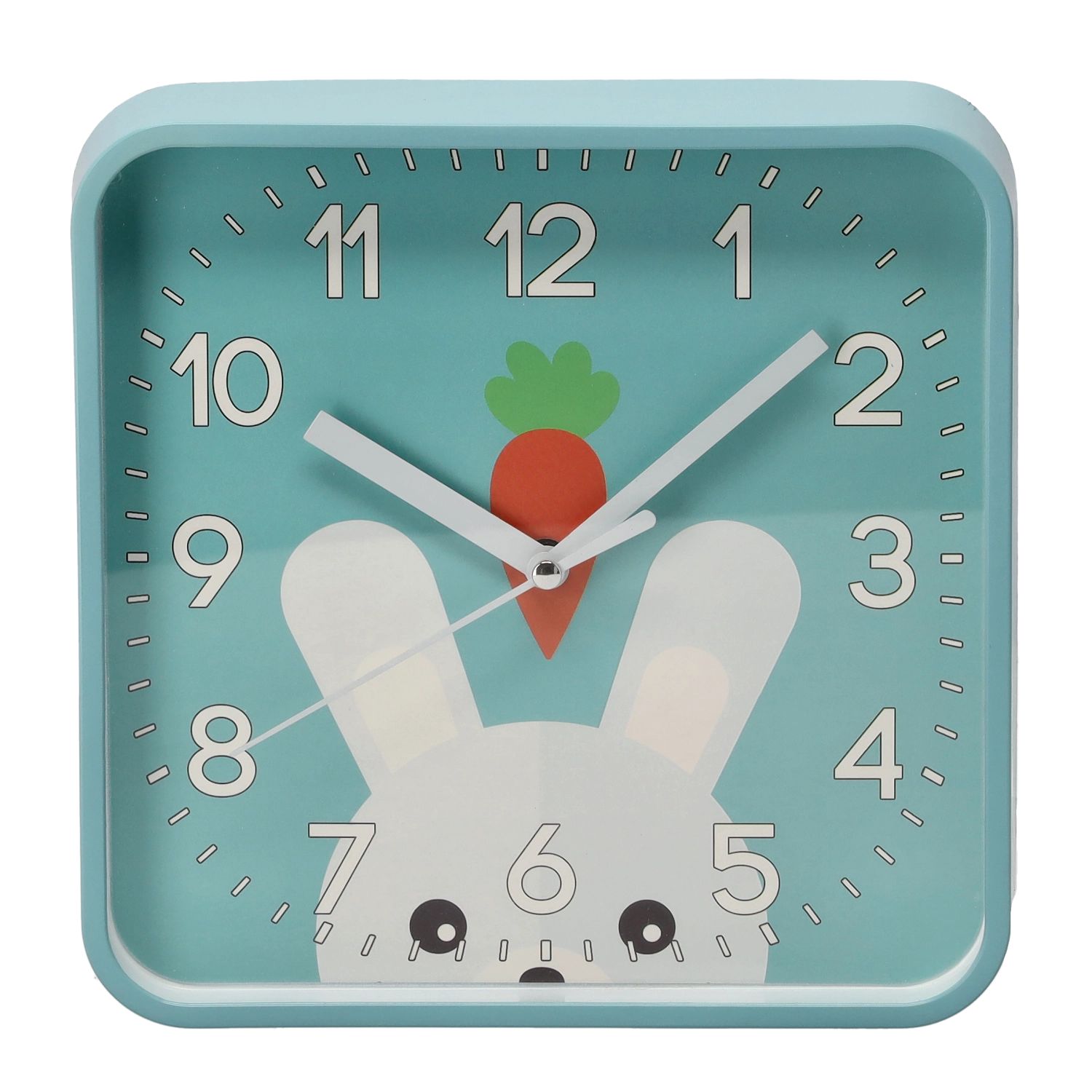 Veselé štvorcové hodiny s oblými rohmi vytvoria v izbe príjemnú atmosféru a podporia detskú zvedavosť. Veľké kontrastné číslice a výrazné minútové rysky zabezpečujú excelentnú čitateľnosť aj z diaľky, takže sa deti učia čas prirodzene a hravou formou.
