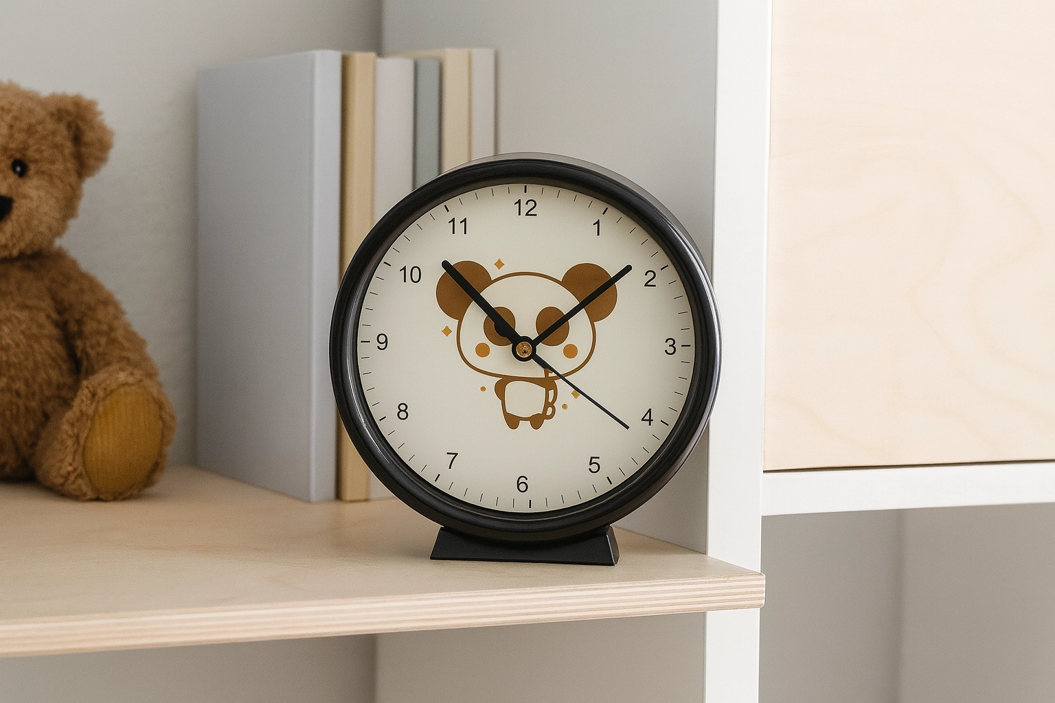 Hravý dizajn s medvedíkom, mačkou či pandou rozžiari detskú izbu a motivuje k učeniu času.