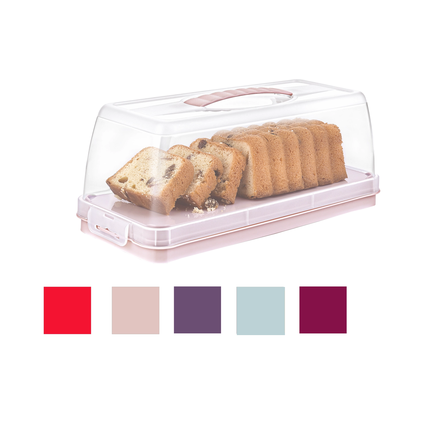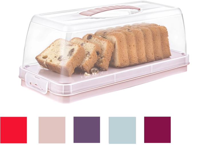 Pevné bočné klipy a integrovaná rukoväť udržia veko spoľahlivo na mieste a uľahčia prepravu tort, chlebov aj zákuskov bez rizika posunu.
