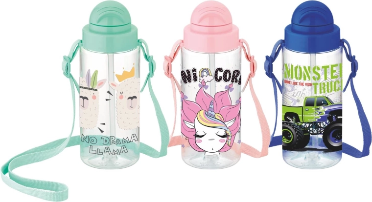 Táto ľahká a odolná fľaša na pitie z plastu bez BPA je skvelou voľbou pre deti aj školákov. Integrovaná slamka umožňuje pitie bez nakláňania a skrutkovacie viečko s tesnením chráni pred vytečením v taške alebo batohu.