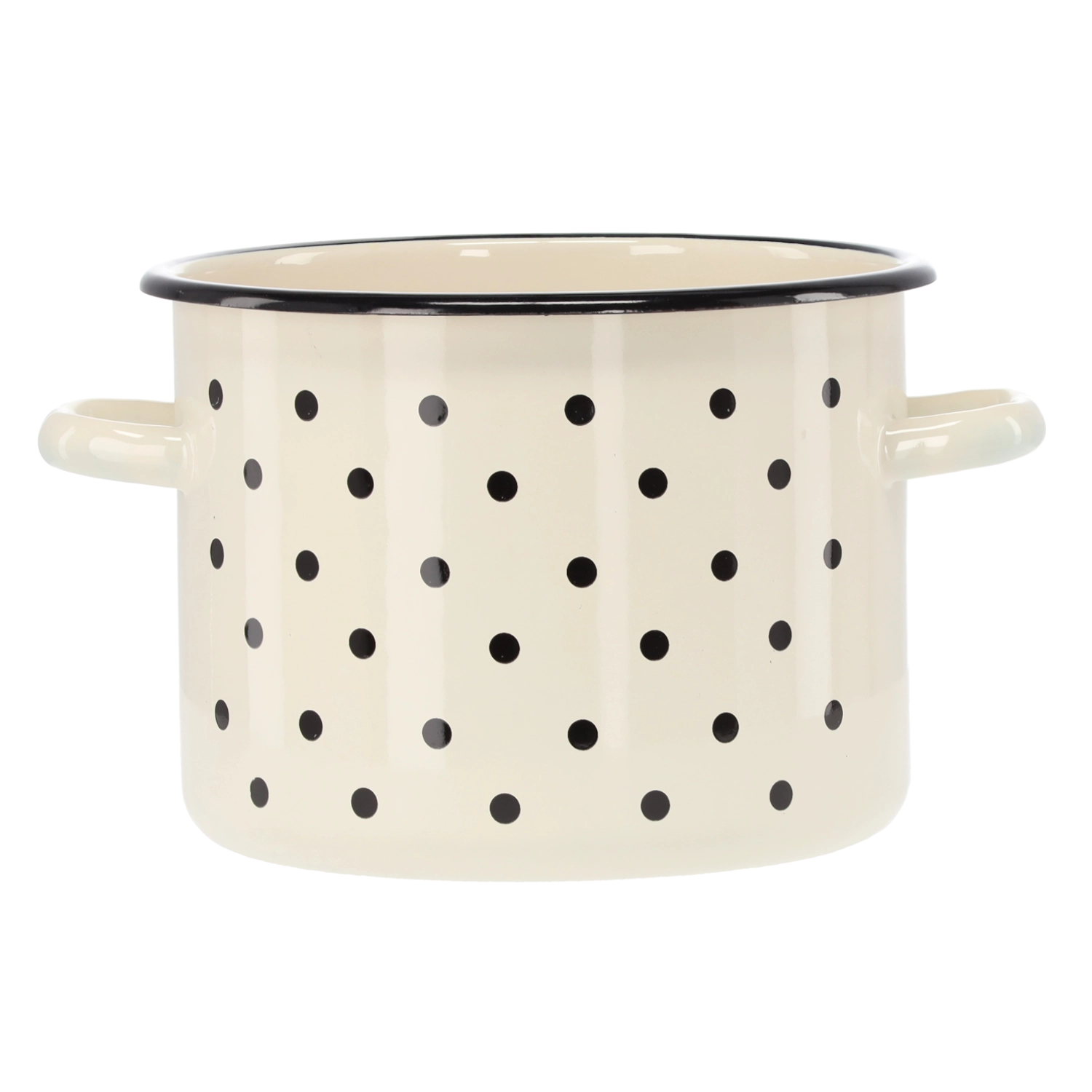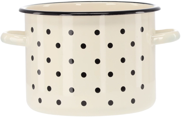 Tento praktický smaltovaný hrniec kombinuje nadčasový dizajn s vysokou odolnosťou. Bielu farbu s jemným bodkovaným vzorom dodá vašej kuchyni svieži vzhľad, zatiaľ čo kvalitný smaltovaný povrch zabezpečí rovnomerné zahrievanie a dlhú životnosť.