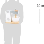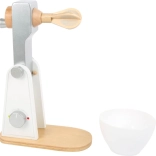 Drevený kuchynský robot small foot poteší malých kuchárov realistickými funkciami a kvalitným spracovaním. Otočné metličky miešajú cesto v plastovej mise a sklopná mixovacia hlava umožňuje pohodlné vkladanie aj vyberanie surovín. Robustný podstavec zaisťuje, že robot pri hre pevne stojí.