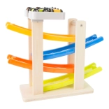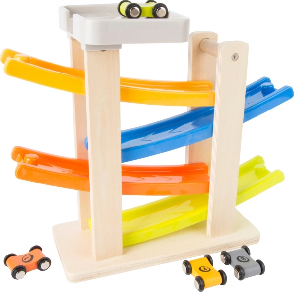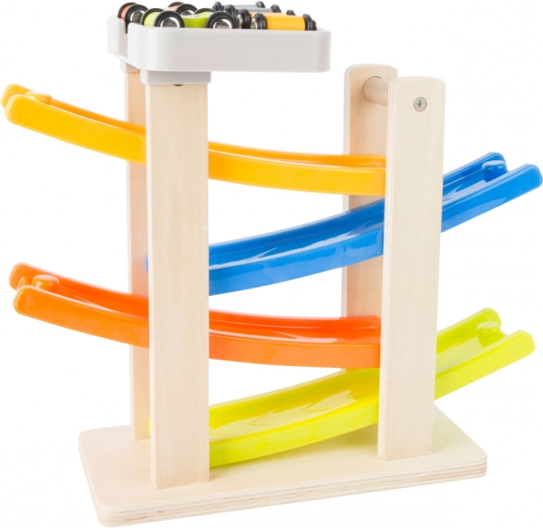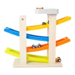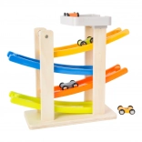 Táto fascinujúca klip klap dráha je vyrobená z kombinácie dreva a plastu, čo zabezpečuje jej dlhú životnosť a bezproblémové používanie. S jej štyrmi farebnými rampami deti môžu sledovať, ako sa autíčka rútia nadol s úžasnými skokmi a otočkami. Je ideálna pre deti od 18 mesiacov, ktoré sa rady hrajú a zároveň rozvíjajú svoje motorické zručnosti.