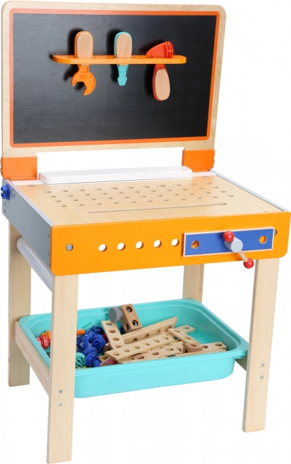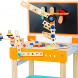 Vďaka stabilnej drevenej konštrukcii, prehľadnému úložnému boxu na súčiastky a dodaným skladacím komponentom deti ľahko rozvíjajú jemnú motoriku, fantáziu aj technické myslenie. Ideálne do detskej izby aj herne.