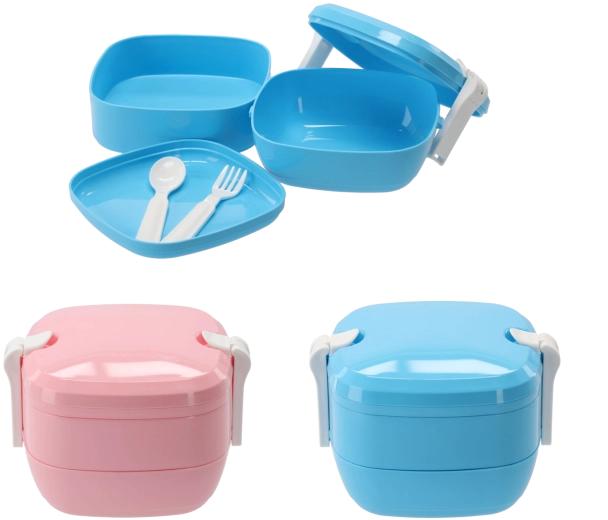 Praktický a štýlový lunch box s dvomi oddelenými priehradkami na pohodlné nosenie rôznych jedál. Vyrobený z odolného plastu bez BPA, má tesné uzatváranie proti úniku tekutín a kompaktné rozmery na ľahké uloženie do tašky. Súčasťou je súprava príborov, takže máte všetko potrebné na jedlo na cestách.