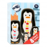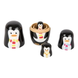 Štyri láskyplne maľované figúrky v podobe tučniakov tvoria rodinu Matrjošky. Menší tučniaci sa podľa veľkosti postupne schovávajú do seba, čo zlepšuje koordináciu ruka-oko a jemné motorické zručnosti u detí. Tieto bábky sa ľahko otvárajú a každá z nich vyžaruje svoje jedinečné čaro, ktoré je nielen krásne na pohľad, ale tiež skvelé ako vzdelávacia pomôcka do detskej izby.