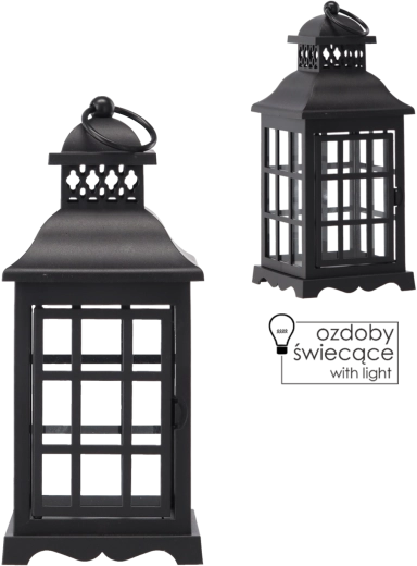 Elegantná prázdna lampa v čiernej farbe s praktickými dvierkami a dekoratívnou mriežkou. Ideálna na vlastné dozdobenie, domáci interiér aj cintorínnu výzdobu. Odolné vyhotovenie a univerzálny dizajn pre štýlové osvetlenie a dekoráciu kedykoľvek počas roka.