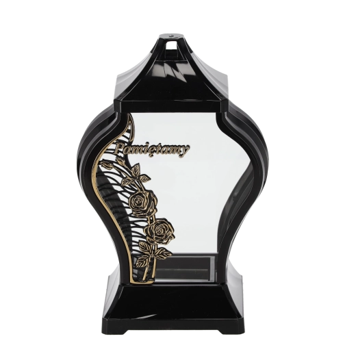 Dizajnový lampáš v čierno‑zlatom prevedení s decentným motívom popínavej ruže je ideálnou voľbou pre tých, ktorí hľadajú elegantnú a vkusnú ozdobu na hrob. Výška 30 cm zabezpečuje dobrú viditeľnosť aj stabilitu, zatiaľ čo nadčasová kombinácia farieb podčiarkuje dôstojný charakter miesta posledného odpočinku.