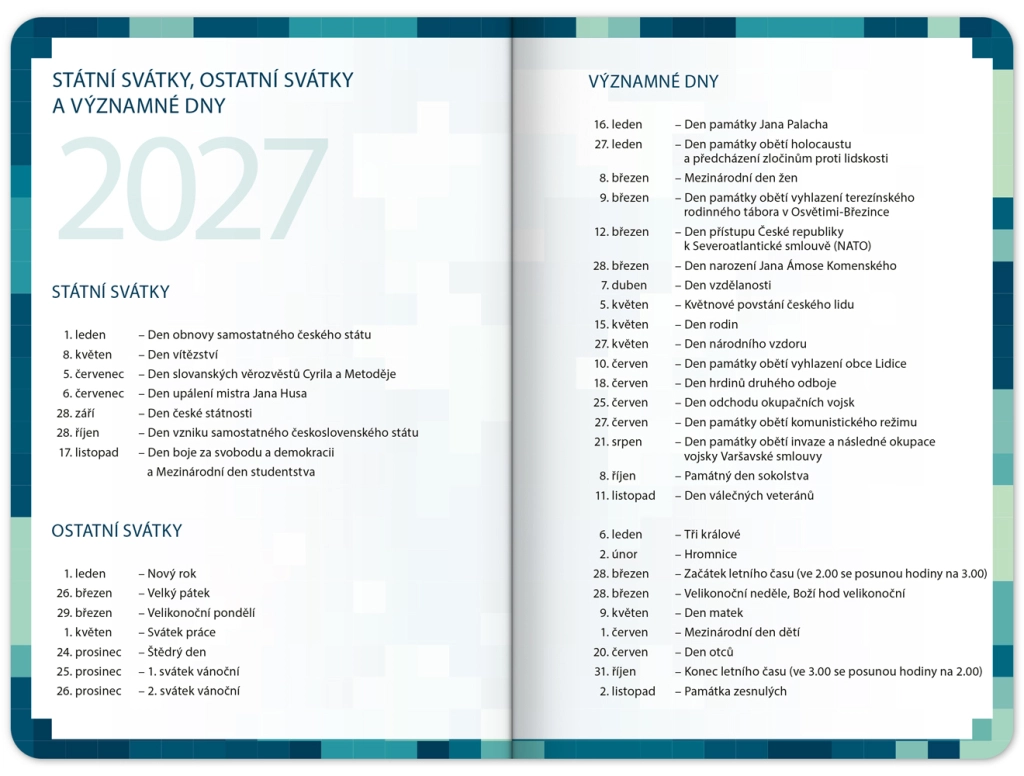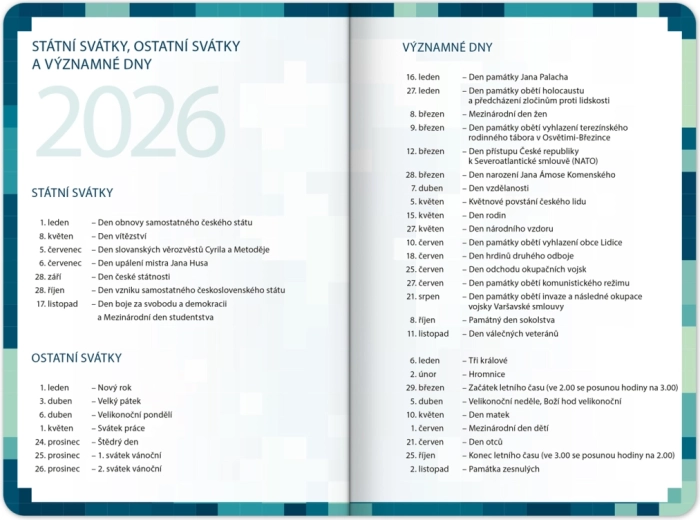 Súčasťou sú užitočné študijné pomôcky, ktoré máte vždy po ruke. Nájdete tu ťaháky z kľúčových predmetov, rozvrhy pre rýchly prehľad hodín a kalendár prázdnin pre jednoduché plánovanie.