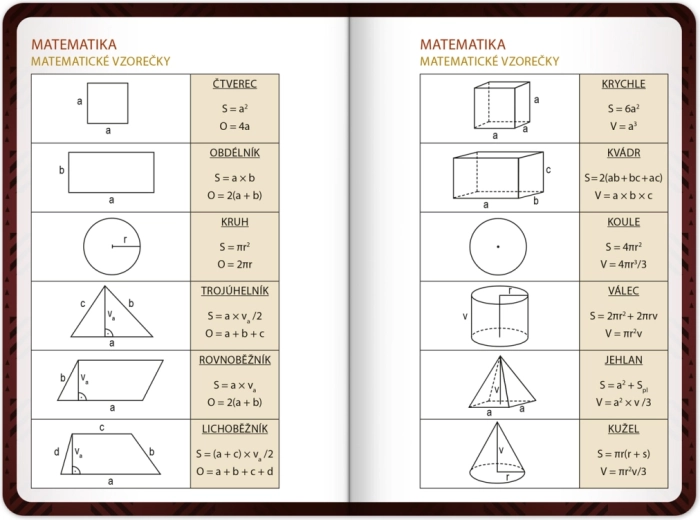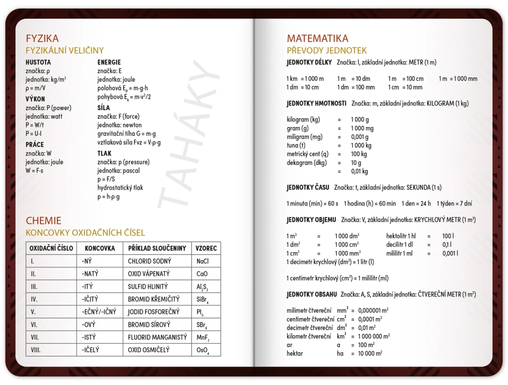 ťaháky z matematiky, fyziky, chémie a angličtiny; rozvrhy hodín; prehľad termínov prázdnin