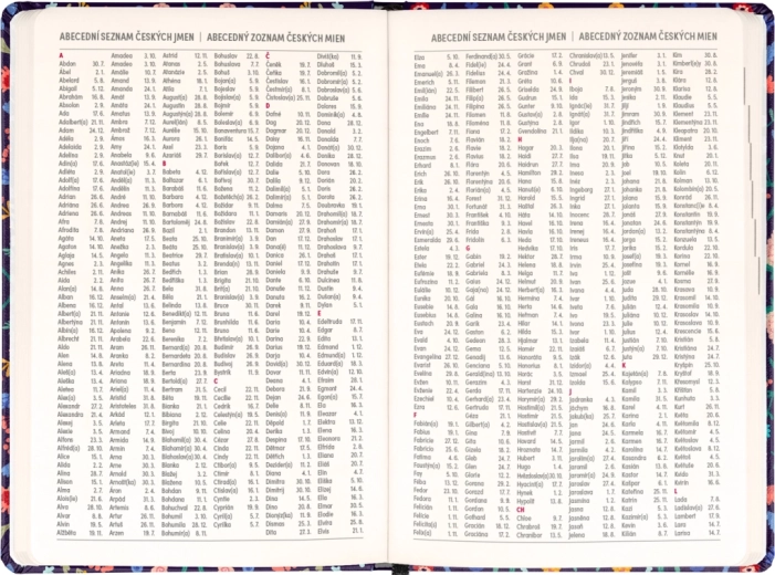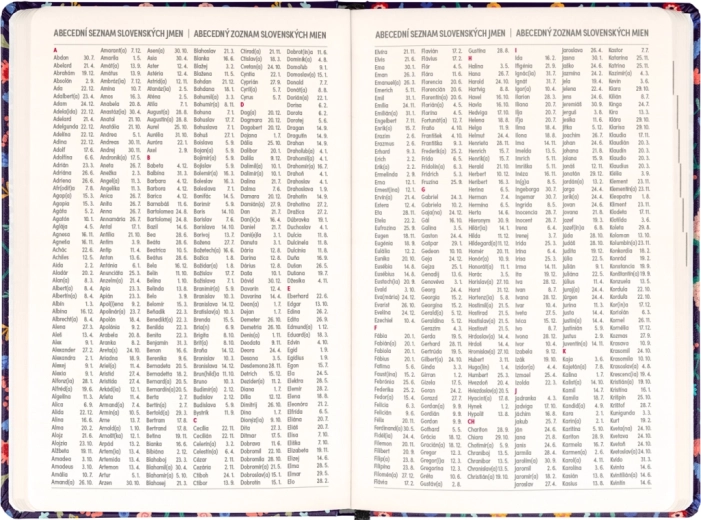 - Prehľadnosť: týždenné stĺpcové kalendárium s vyznačenými menami a sviatkami.