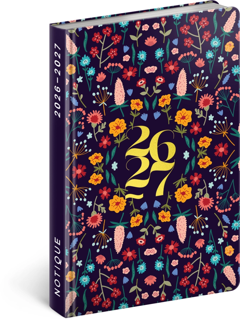 Elegantný vreckový diár NOTIQUE Petito Flóra na obdobie júl 2026 – december 2027 je ideálny na každodenné plánovanie. Ponúka 18-mesačný prehľad, česko‑slovenské týždenné stĺpcové kalendárium s menami a sviatkami a kompaktný rozmer 11 × 16 cm do kabelky aj batohu.