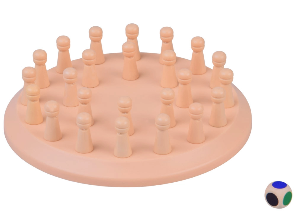 Hráč hodí farebnou kockou a snaží sa nájsť kolík rovnakej farby. Správna voľba znamená bod, nesprávna vracia kolík späť. Rýchle a napínavé.