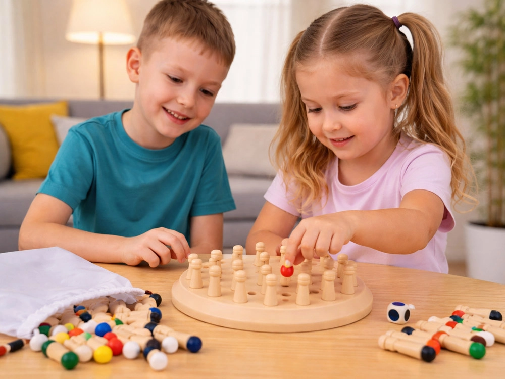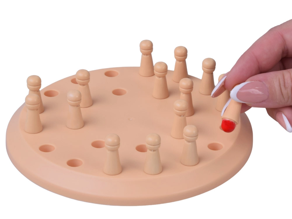 Farebné konce kolíkov skryté v otvoroch nútia hráčov zapamätať si pozície a farby. Ideálne cvičenie kognitívnych zručností formou hry.