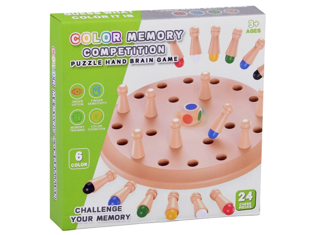 Drevená kruhová doska s otvormi a kolíkmi ukrýva farby, ktoré si hráči musia zapamätať. Po hode farebnou kockou sa snažia odhaliť kolík zodpovedajúcej farby. Ak je voľba správna, kolík získavajú, ak nie, vracia sa späť – na rade je ďalší hráč. Hra je skvelá na rozvoj vizuálnej pamäti, spojitostí a jemnej motoriky.