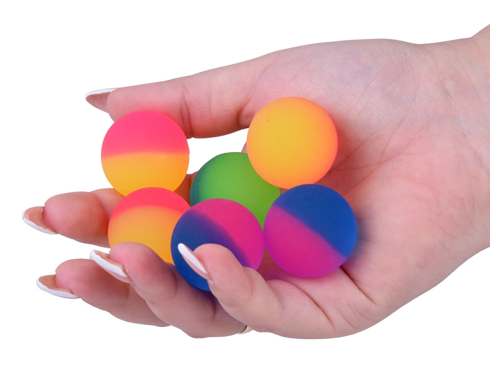 Rozhýbte detskú zábavu sadou 5 skákacích kaučukových loptičiek v neónových dvojfarebných kombináciách. Vďaka výbornej pružnosti sa skvele odrážajú od tvrdých povrchov, sú odolné a perfektne padnú do detskej ruky. Ideálne na hádzanie, chytanie a odskoky doma aj vonku – na ihrisku, záhrade či pláži.