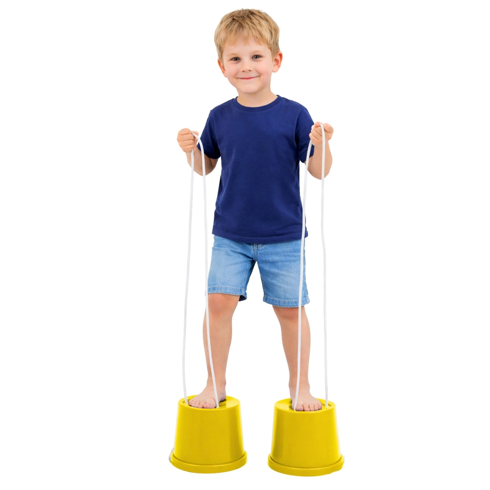 Zábavné vedierkové chôdze v jasnej žltej farbe pomáhajú deťom rozvíjať rovnováhu, koordinačné schopnosti a obratnosť. Vďaka pevnej plastovej konštrukcii a úchytným šnúrkam sú stabilné, ľahko ovládateľné a ideálne na aktívnu hru vonku aj vnútri.