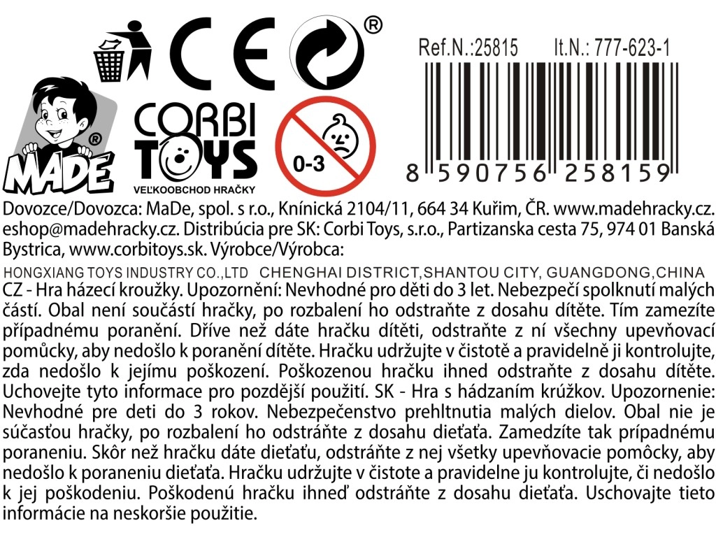 Objavte klasickú zručnostnú hru, ktorá rozvíja jemnú motoriku, koordináciu oko–ruka a súťaživosť. Hodové krúžky sú vyrobené z odolného plastu, takže vydržia aj časté používanie na záhrade, doma aj na dovolenke. Vďaka ľahkému a bezpečnému materiálu sú ideálne pre deti od 3 rokov.