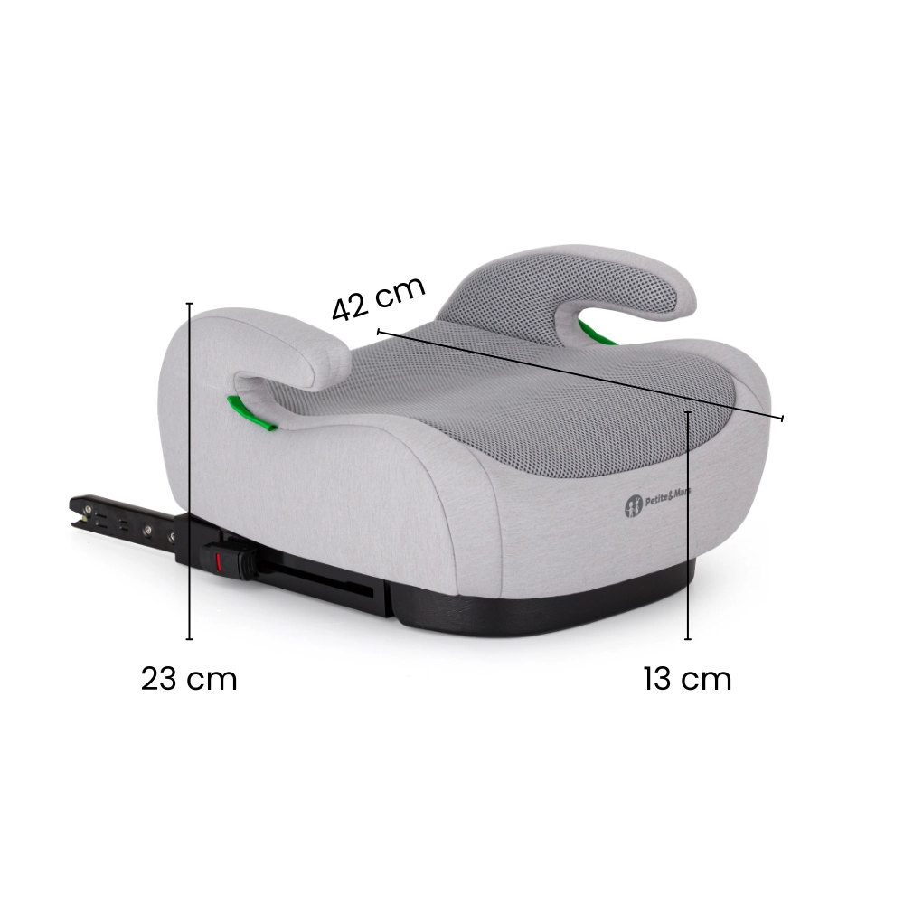 Podsedák Optimus Pro i-Size Air od značky PETITE&MARS zvyšuje dieťa do správnej výšky pre vedenie bezpečnostného pásu a tým zabezpečuje správne a pohodlné pripútanie. ISOFIX konektory z nehrdzavejúcej ocele pevne ukotvia sedák vo vozidle, zatiaľ čo vodiaca spona pomáha nastaviť pás tak, aby neviedol cez krk ani príliš nízko pod ramenom.